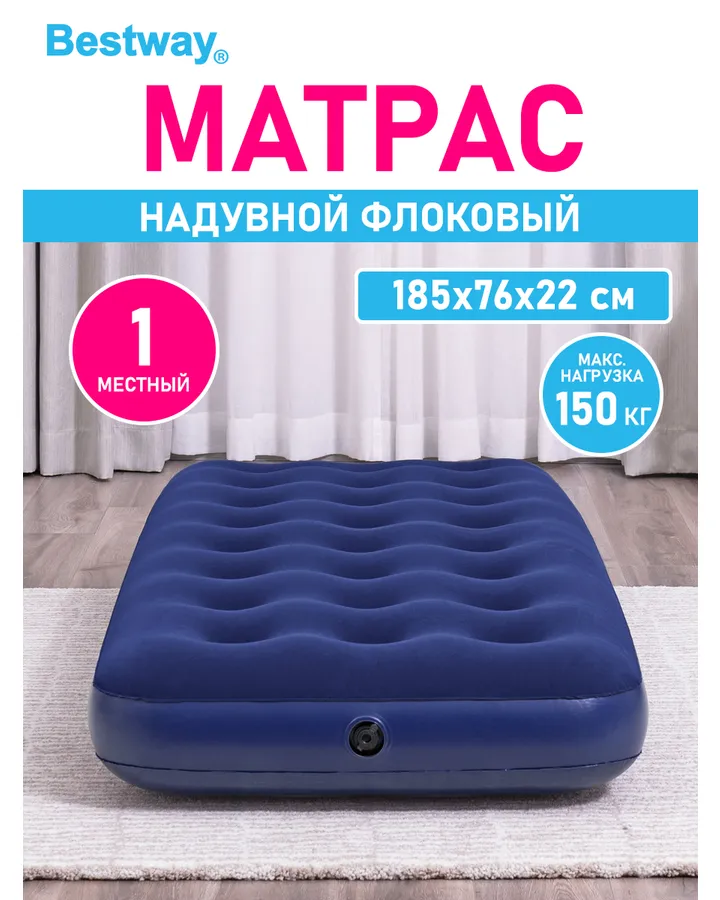 Матрас надувной флоковый Bestway Одно местный JrTwin185х76х22 см