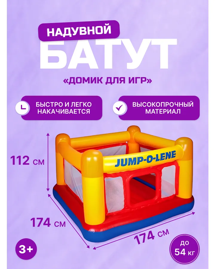Батут Intex Надувной / Домик для игр / 174х174х112см