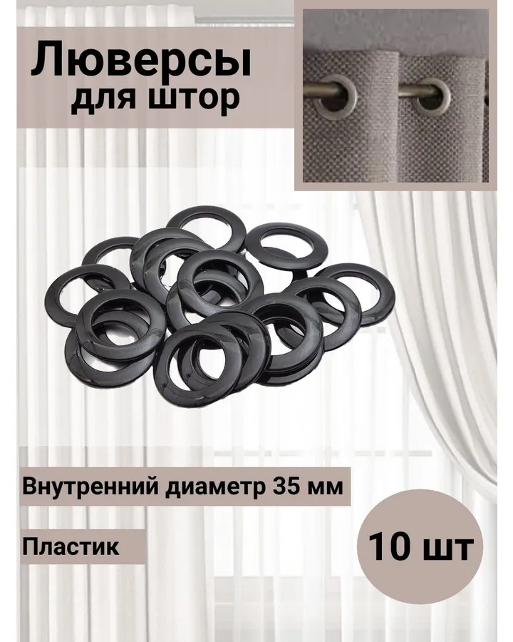 Люверс для штор Айрис круглый кольцо на карниз с замком пластиковый 35 мм 10 шт 70 матовый черный