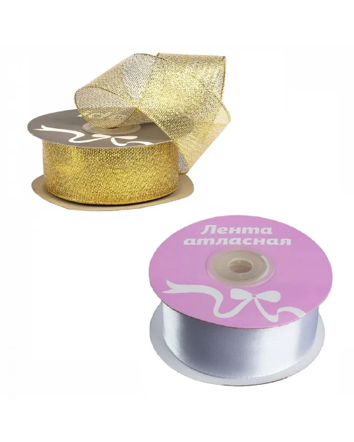 5Набор разноцветных лент IDEAL 25 мм 2шт (металлизированная лента-парча с люрексом - 1 шт. атласная лента - 1 шт)Хорошие ленты