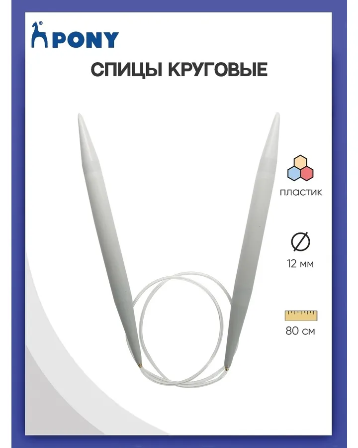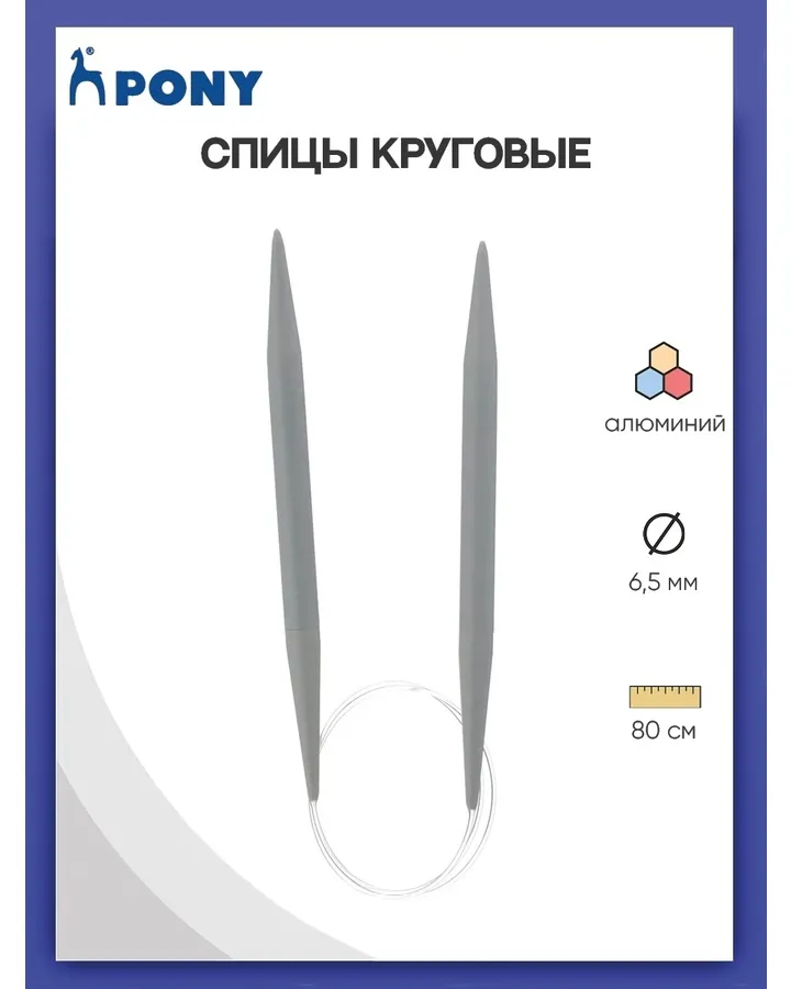 Спицы круговые Pony алюминиевые гладкие с покрытием с гибким тросиком 6.5 мм 80 см 50214