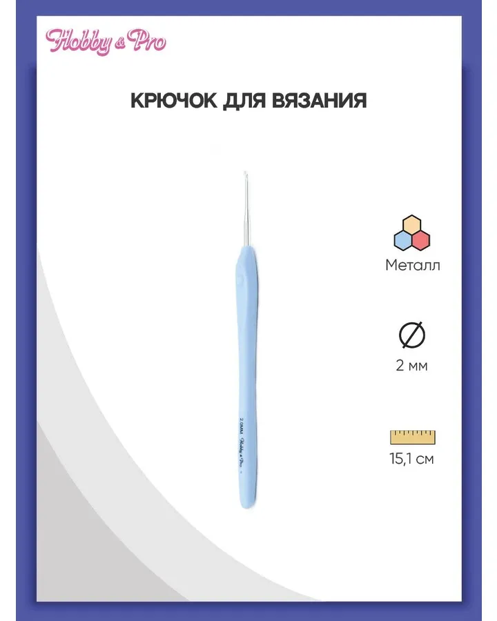 Крючок для вязания Hobby Pro из практичного металла с прорезиненной мягкой ручкой 2 мм 953200
