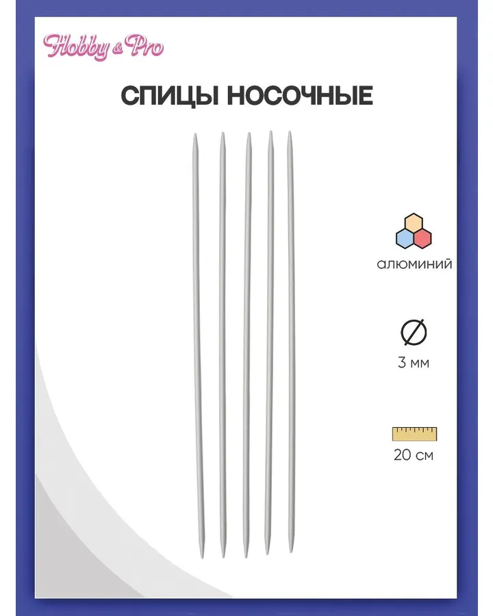 Спицы носочные Hobby Pro чулочные алюминиевые с тефлоновым покрытием без ограничителей 20 см 3.0 мм 940530