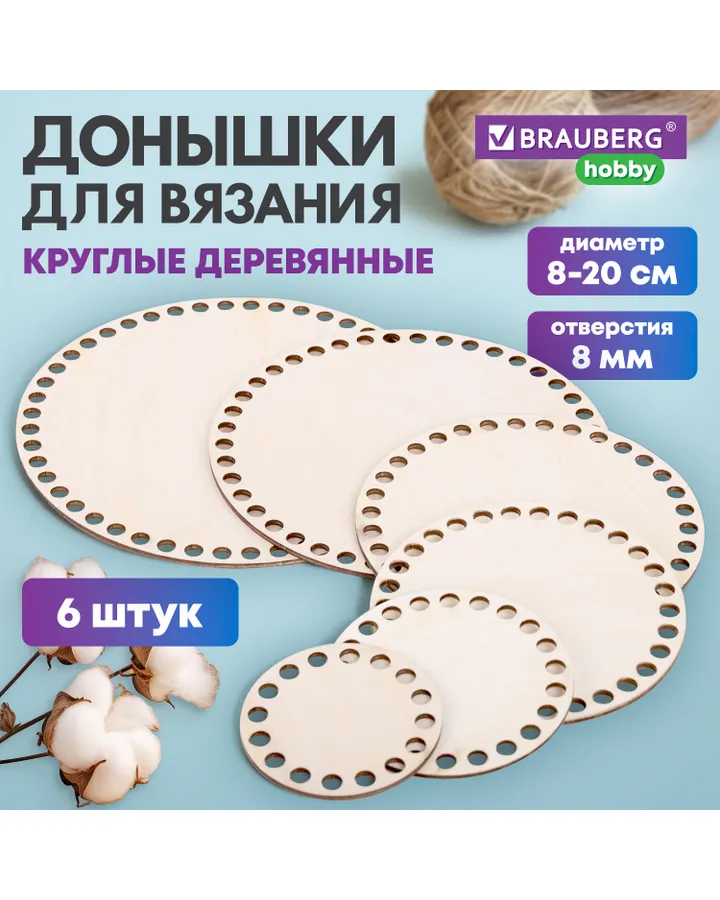 Донышки Brauberg для вязания корзин и сумок деревянные овальные 2 штукиОтличные донышки, очень удобные для вязания!