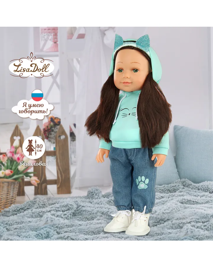 Кукла пупс Lisa Doll высота 40 смПупс очень понравился. Соответствует описанию. Упакован в коробку. Коробка целая, не порвана. Купила на подарок, подарить не стыдно. При получении вставила батарейки (принесла с собой, в комплект не входят, как и указано в описании), проверила. Говорит много фраз. Правда не очень громко. Думаю, что при постороннем шуме будет не слышно.