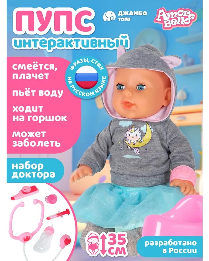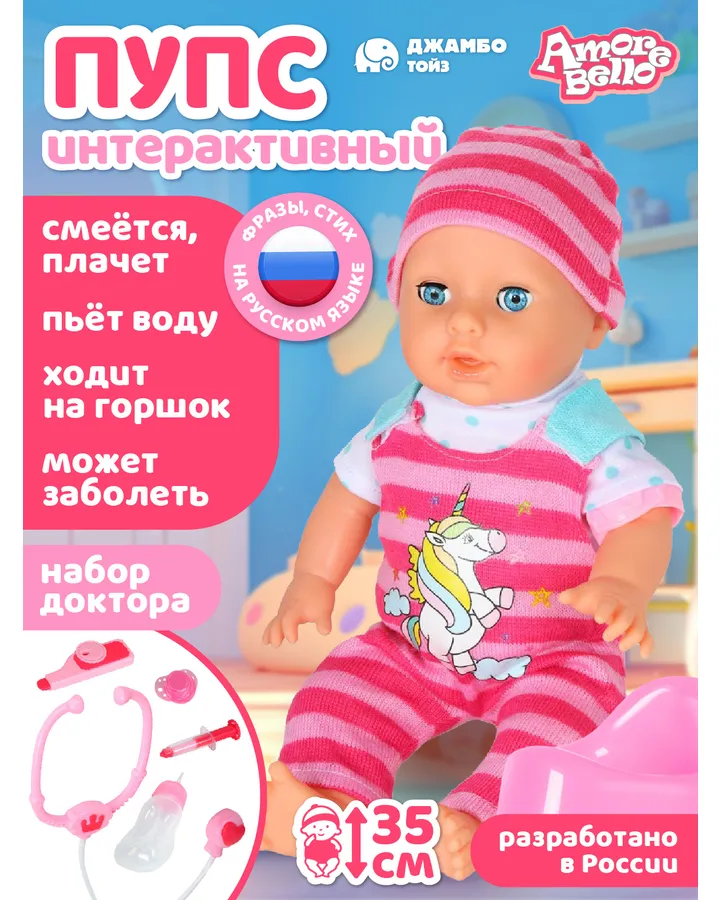 Кукла пупс AMORE BELLO Розовый-белый высота 40 смПрекрасный пупсик. Очень хорошо, что тело мягкое :ребёнок сказал)))