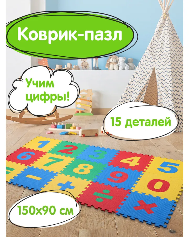 Коврик-пазл Юнландия Фигуры 90 x 90 смРебёнок с удовольствием разбирает и собирает