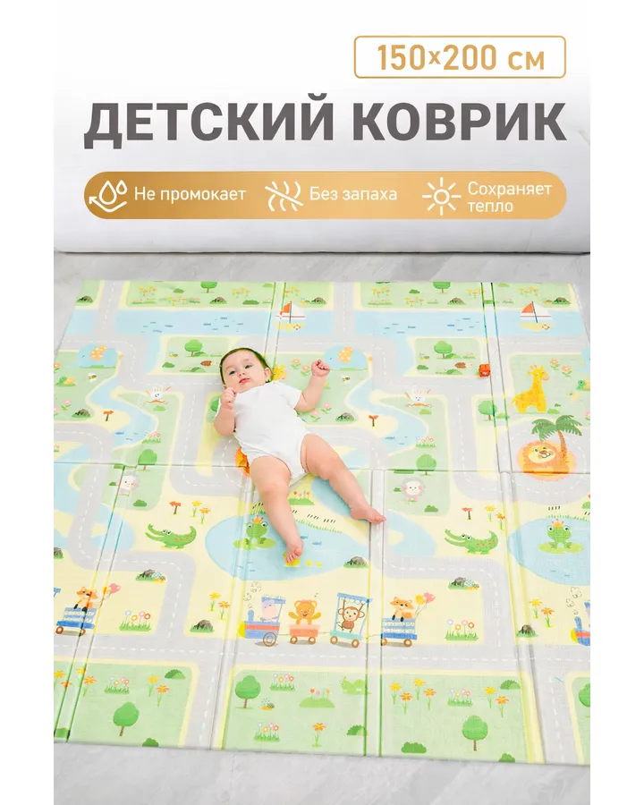 Детский складной коврик MIKMEL Дороги Холмы 150 x 200 см