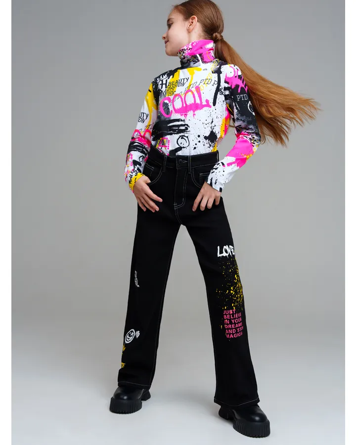 PlayToday расширяет ассортимент за счет трендовых фасонов: джинсы-скинни с контрастными строчками, бойфренды с акцентами на боковых швах, кюлоты с длиной до колена. В линейке представлены базовые варианты и эксклюзивные модели с рисунками. Подходят для комбинирования с кроссовками, ботинками и даже балетками — создавая образы от casual до street-style.