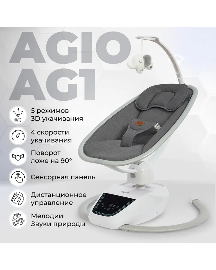 5Качели Nuovita AgioХороший помощник для грудного ребёнка. Хорошо был упакован , всё пришло в идеальном состоянии. Работает как и от пульта , так можно и на экране регулировать .