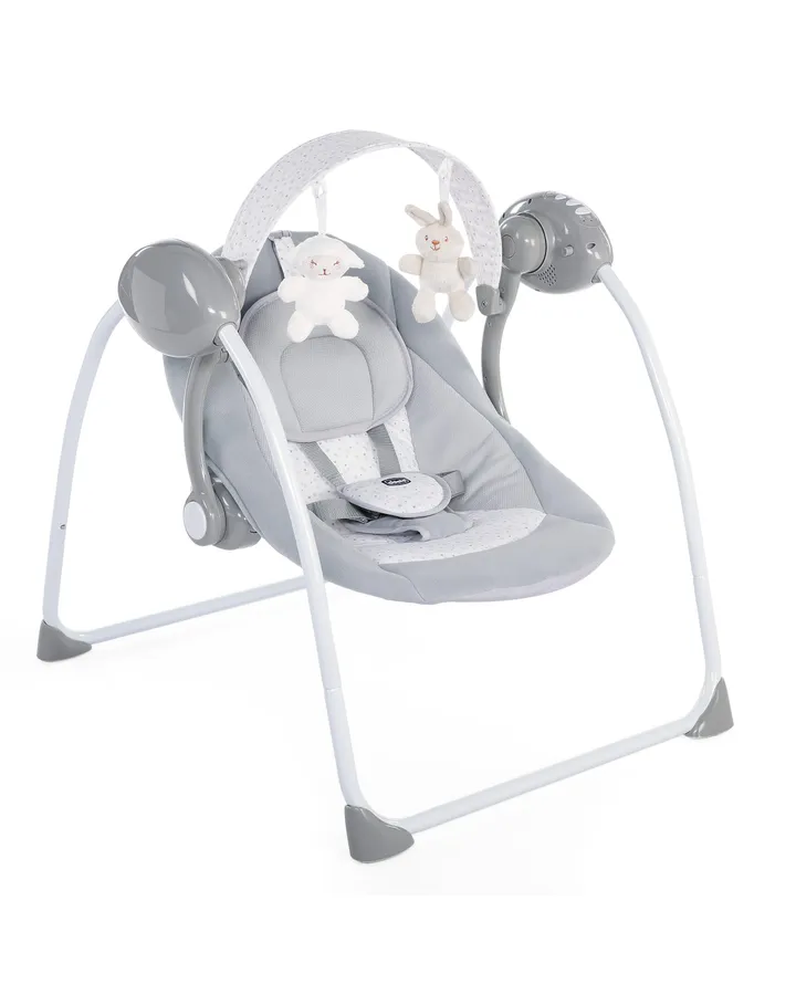 Качели Chicco Swing Up Leafe серыйКрасивые, легкая сборка, удобная посадка для малыша, есть смена положений. Музыка так себе, фонит ужасно, разве что чириканье птичек можно включать. ОЧЕНЬ сильно клацает шарнир при качании, что тревожит ребёнка если тот заснул в качели. Также, ребёнка 7,5 кг на минимальной скорости качают очень сильно. И тут не указано, у них отдельно ещё есть вибрация, но тоже очень сильная, может если одеялом их накрыть будет нормально.