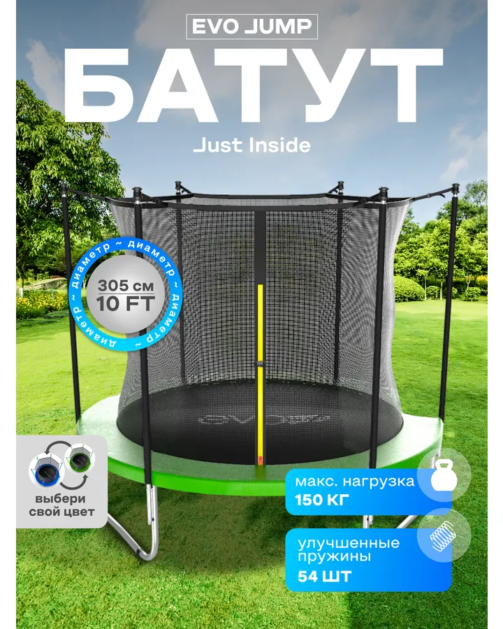 Батут каркасный EVO JUMP EVO jump Internal 10ft green с защитной сеткой, диаметр 305 см