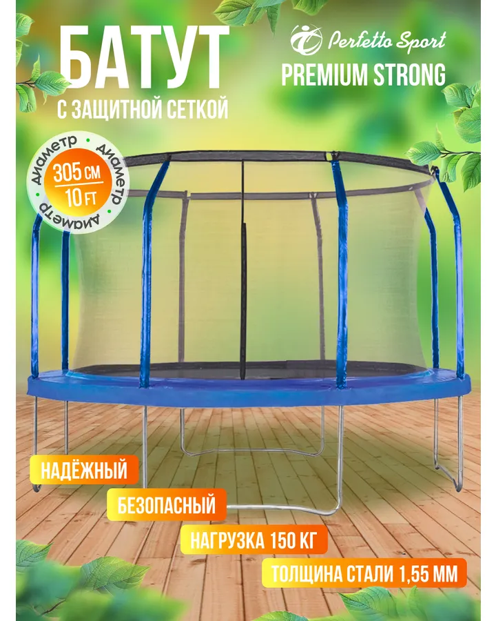 Батут каркасный Perfetto Sport с защитной сеткой 10ft диаметр 3,0 м синий