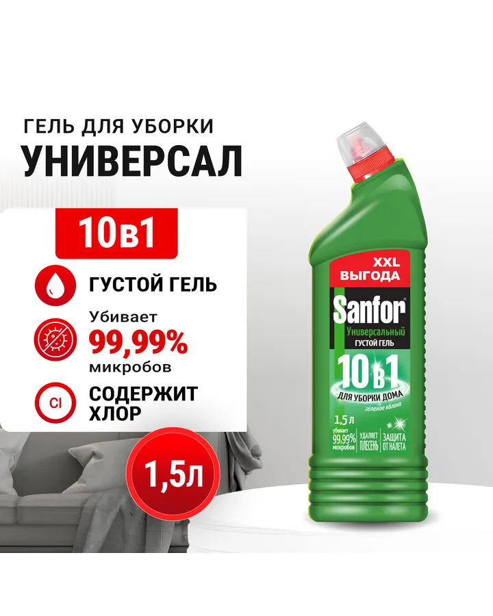 Моющее средство Sanfor Зелёное яблоко 1500 мл универсальное