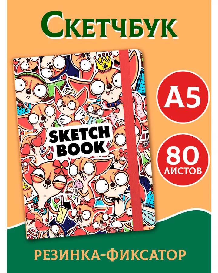 Скетчбук Проф-Пресс блокнот на резинке. Чихуа. А5 80 лист. 1 шт.