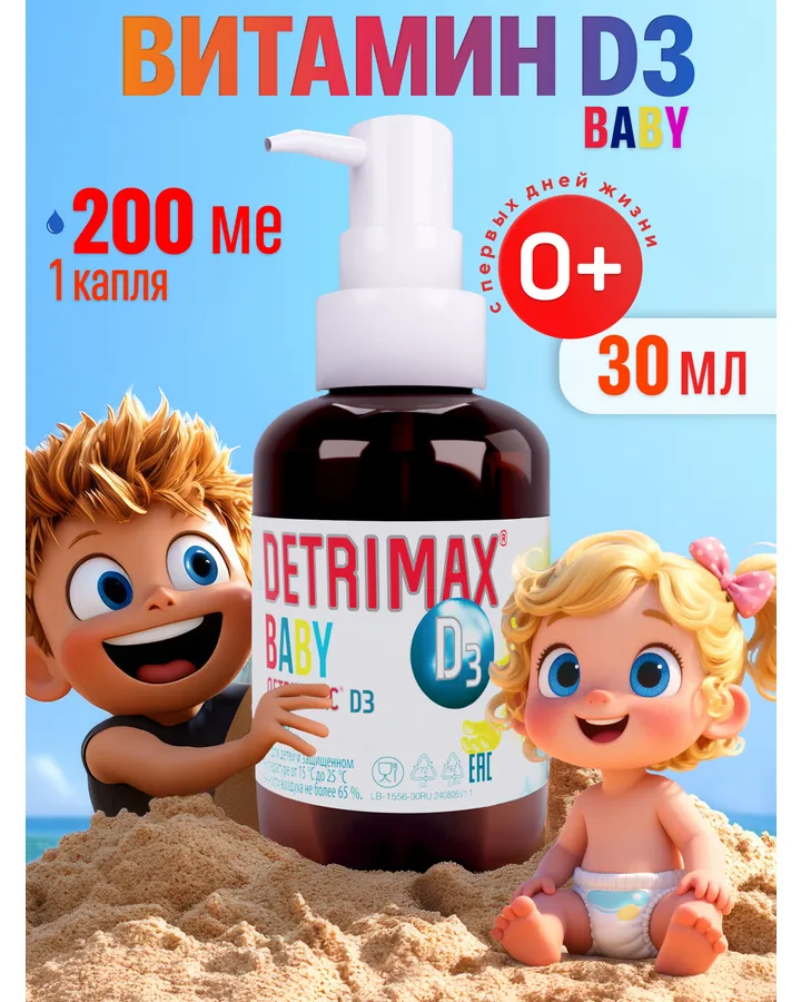 Витамин Д3 Детримакс Бэби 200МЕ капли для детей с рождения 0+ 30мл