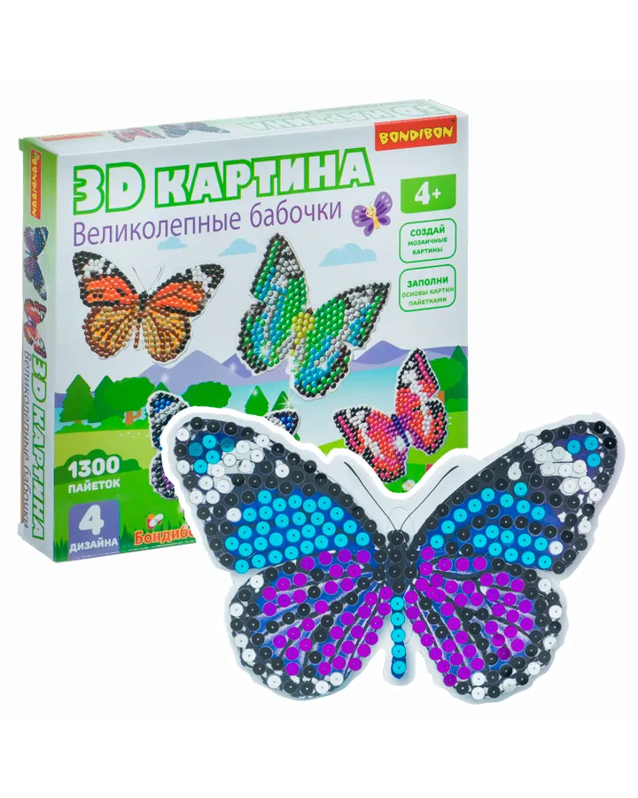 Объемная картина Bondibon 3D Великолепные бабочки 4шт