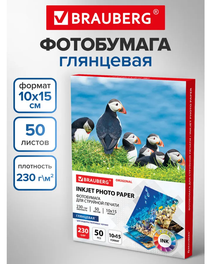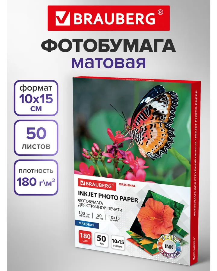 Фотобумага Brauberg матовая для печати фото 50 листов 10x15 см