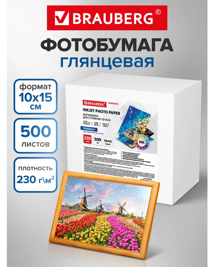 Фотобумага Brauberg глянцевая для печати фото 500 листов 10x15 см
