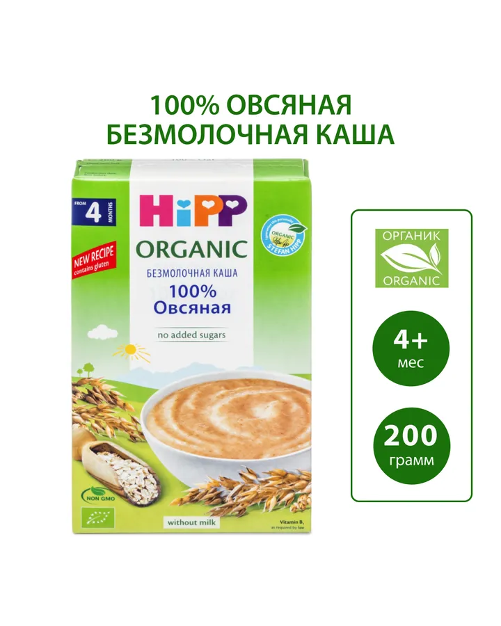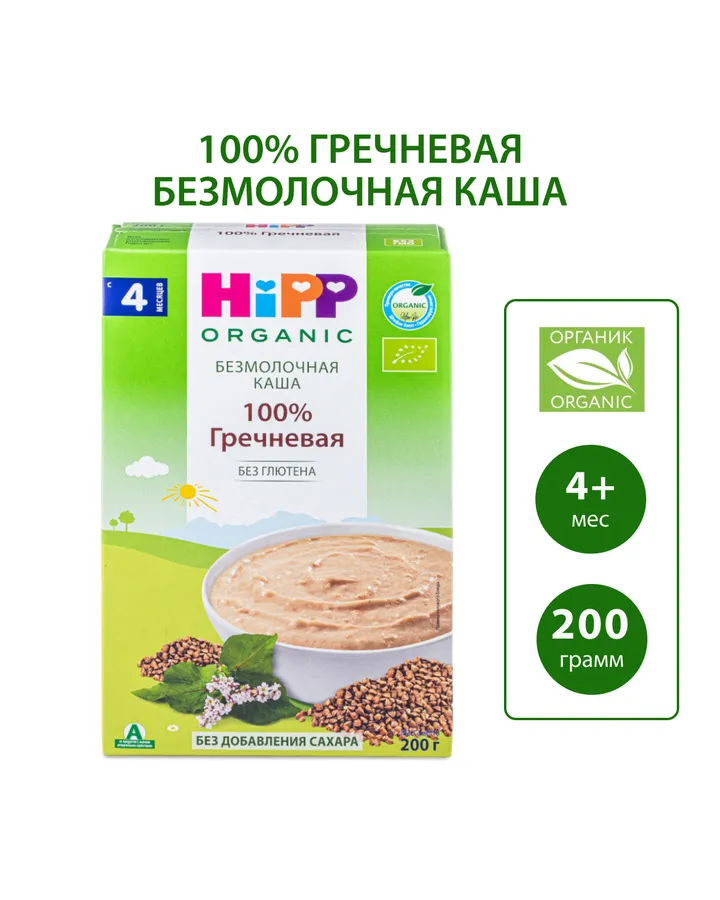5Каша безмолочная Hipp органическая зерновая рисовая 200г с 4месяцевКаша вкусная, совсем не сладкая....