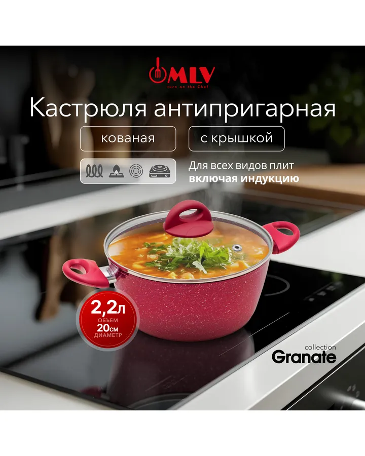 Кастрюля для индукционных плит с крышкой Moulin Villa Оrion 2,2 литра