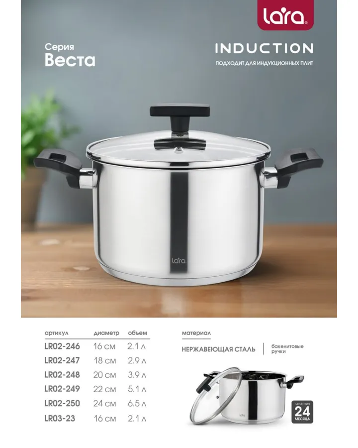 Кастрюля LARA LR02-250 Серия Веста 6,5 л