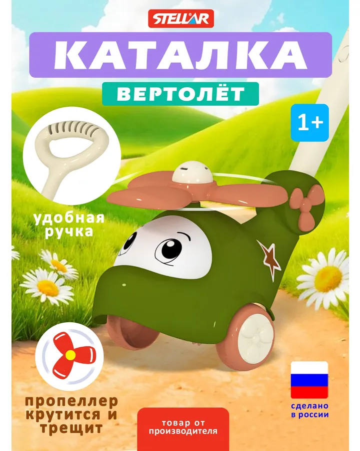 5Игрушка STELLAR каталка Каталка КолобокХороший колобок, размер небольшой, ручка сборная, крепкая. Приятный звук , как погремушка. Упакован в пакет, запах отсутствует