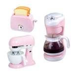 5Игрушка Play Go тостер, миксер, кофемашина 3 предм.Качественный пластик. Красивый внешний вид. В кофеварку наливается вода, нажимаем кнопку и она стекает в кувшин. Прям как настоящая кофеварка. Тостер с таймером, после отсчёта времени тосты выпрыгивают. У миксера крутятся венчики, приделании можно взбить яйца). Все очень реалистичное и со свуковыми эффектами. Дорого конечно, но я не пожалела что купила.