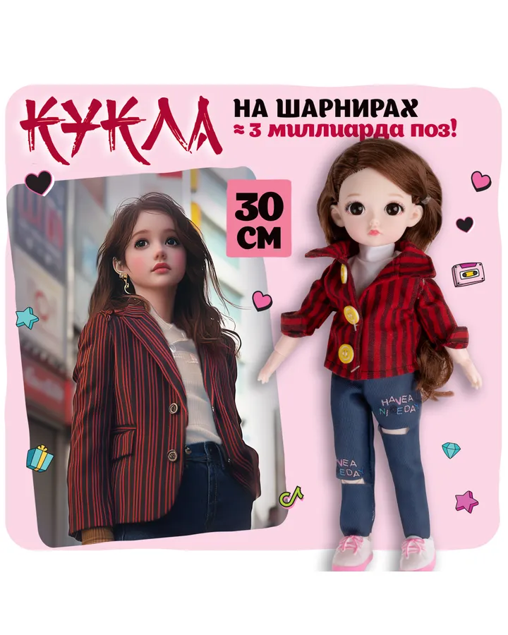 Кукла классическая 1TOY высота 23 смна вид прочная хороший пластик, гладкие волосы- не путаются