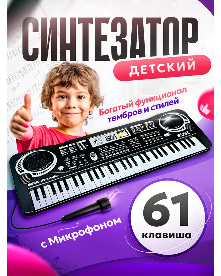 5Игрушка музыкальная FAIRYMARY 61 клавиша Детское развивающее синтезатор, пианиноОтличный синтезатор, ребенок счастлив