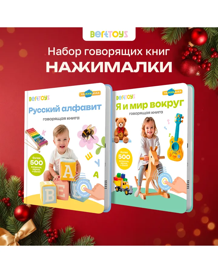 Комплект говорящих книжек BertToys Большие Нажималки: Я и мир вокруг + ЖивотныеТонкие страницы легко рвутся. Очень не удобно, что нужно ровно листать, иначе касание не сработает. Маленькому ребенку это не объяснишь. Если страницы чуть неровно лежит, ничего не работает. Было бы классно толстые картонные