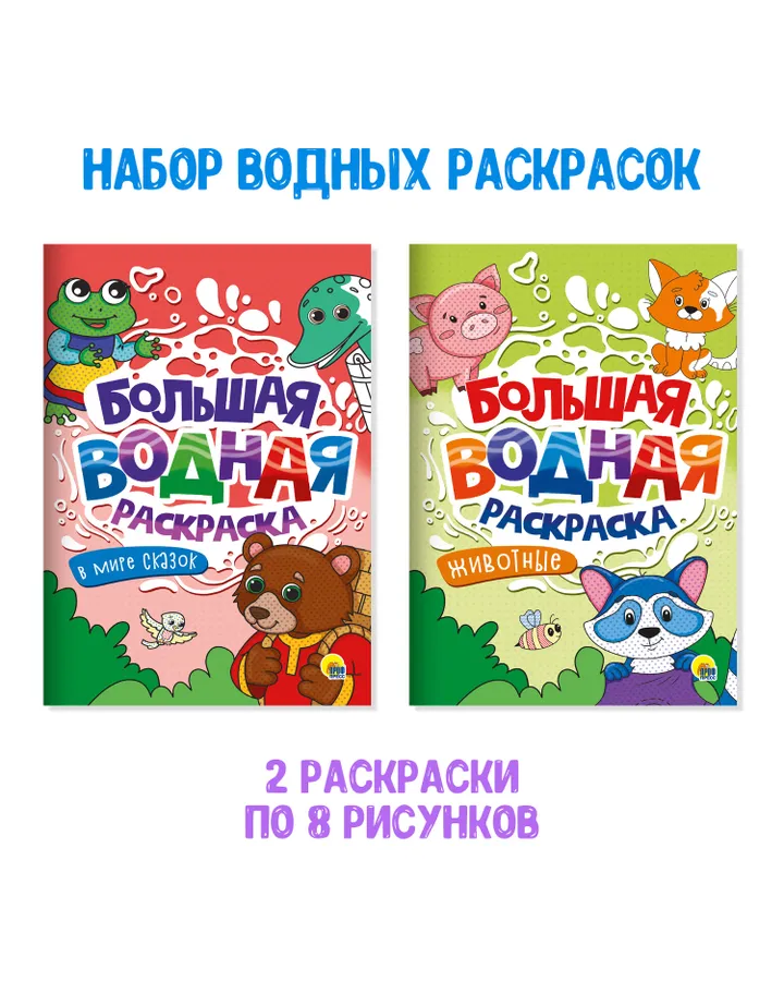 Раскраска Проф-Пресс водная большая комплект из 2 шт по 8 л. 23.8х33 см. В мире сказок+животные