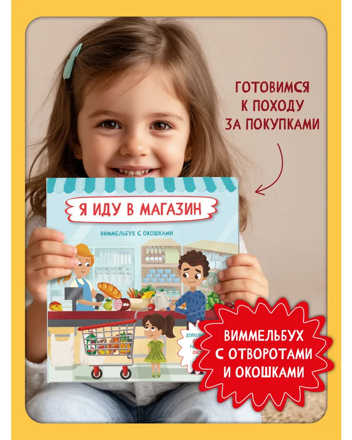 5Книга с окошками Виммельбух BimBiMon Я иду в детский садХороший и удобный формат, яркие картинки, ненавязчивый сюжет.