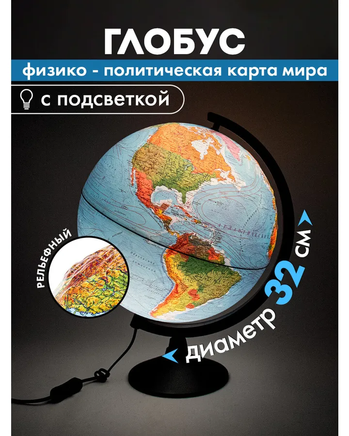 Отличный глобус для уроков! Удобно показывать рельеф.
