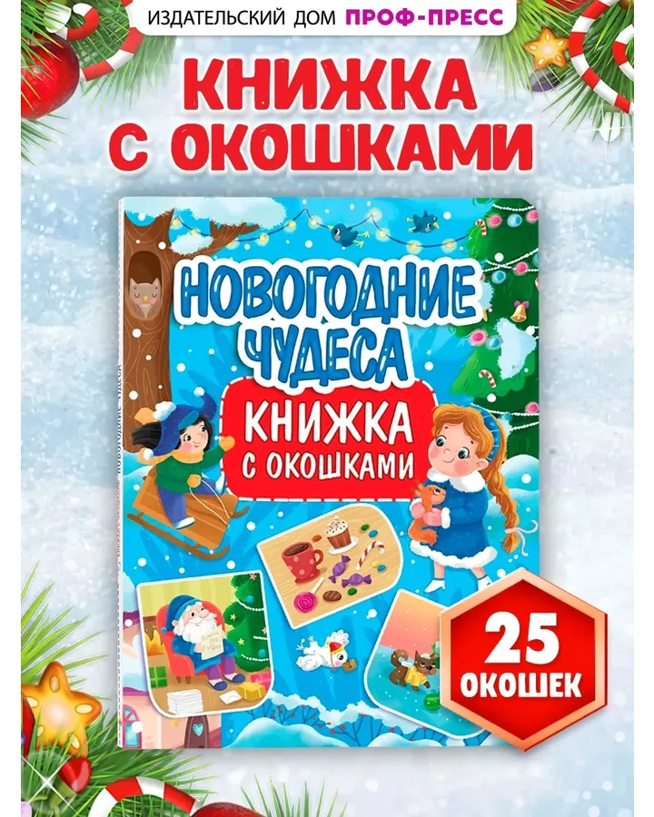 Книга Проф-Пресс с окошками картонная. Новогодние чудеса. А4.