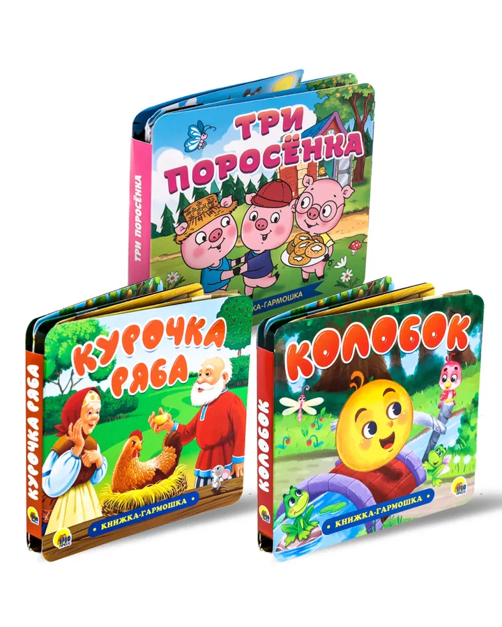 Книжка-гармошка Проф-Пресс Три поросёнка+Колобок+Курочка Ряба 3шт