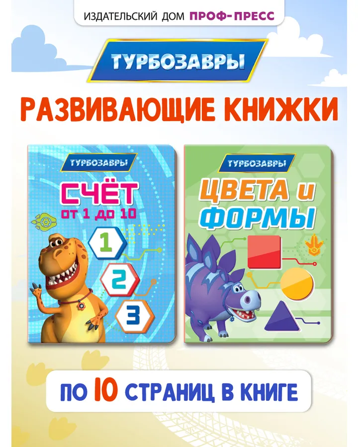 Книжки картонные Проф-Пресс Турбозавры. Мини 11х15 см. 2 шт. Счёт от 1 до 10+Цвета и формы
