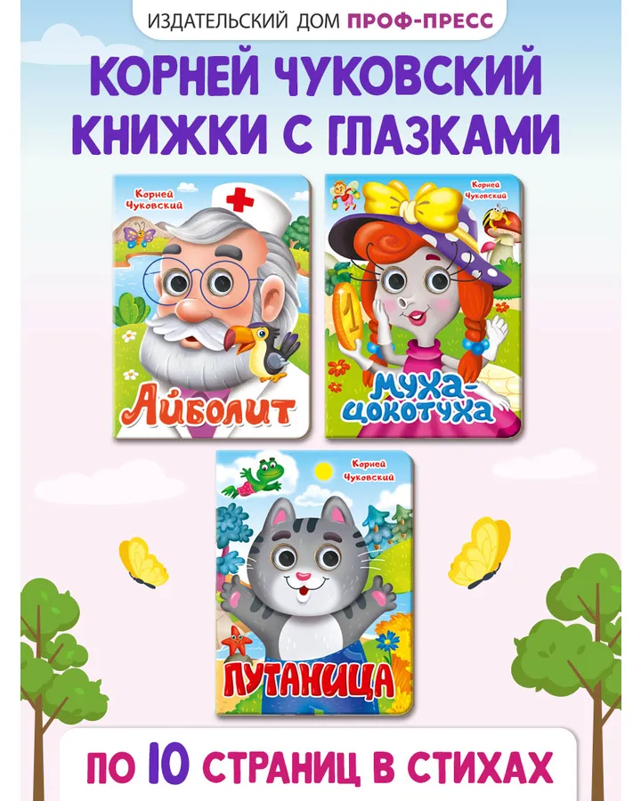 Книжки Проф-Пресс картонные с глазками 3 шт. К. Чуковский Федорино горе+Бармалей+ТелефонОтличные, яркие разнообразные рисунки, ребенок очень заинтересован.