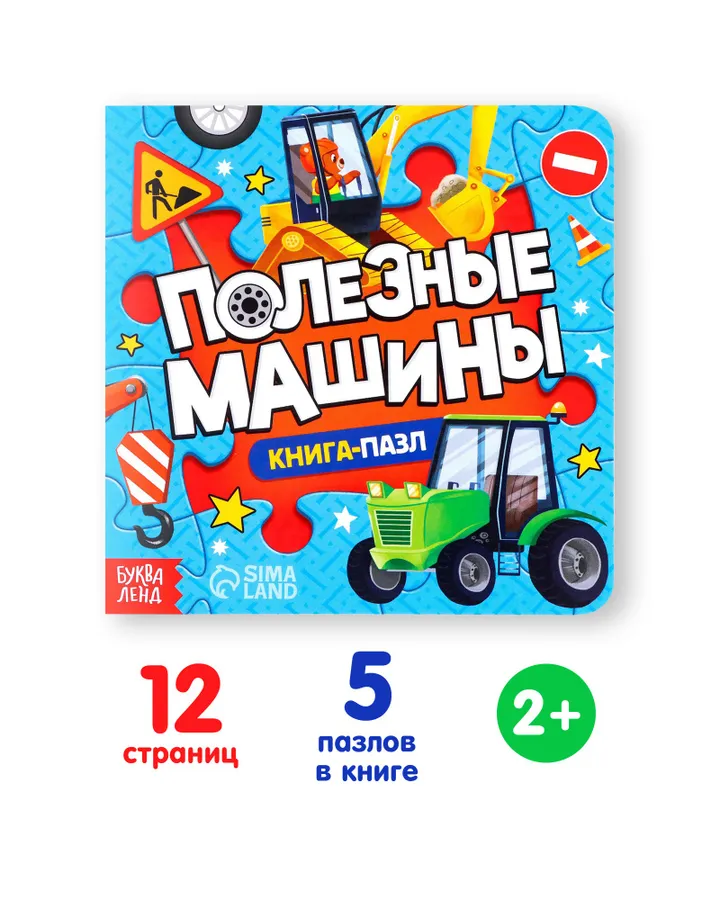 Книга Буква-ленд с пазлами «Полезные машины» 12 стр.