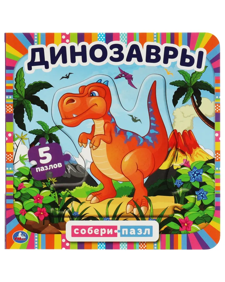 Книга-пазл УМка Динозавры. Картонная книга с 5 пазлами