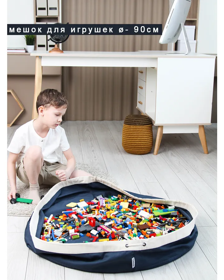 Мешок коврик для игрушек на завязках TSARDANY L beige/white