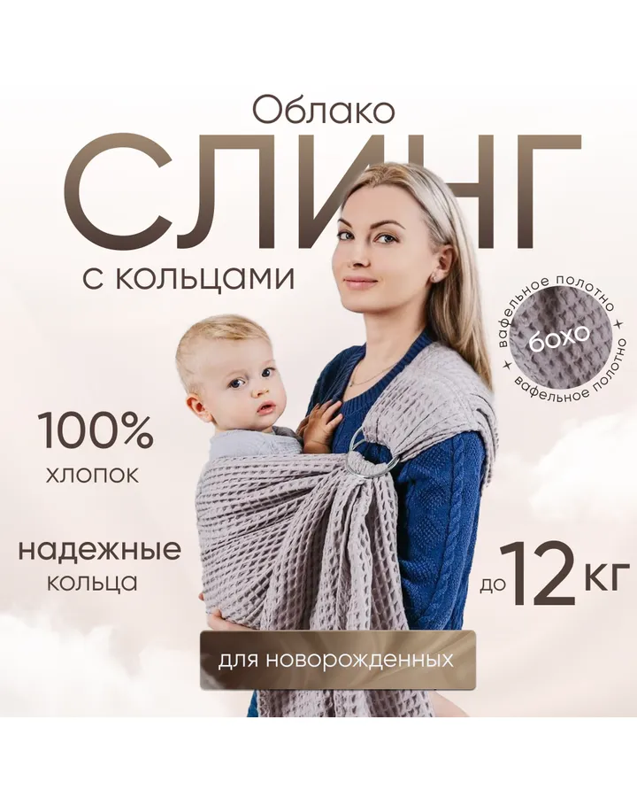 Слинг с кольцами Чудо-Чадо «Облако» хлопок серый