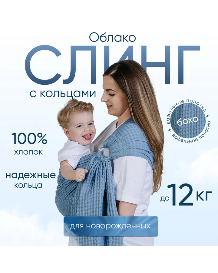 Слинг с кольцами Чудо-Чадо «Облако» хлопок серо-голубой