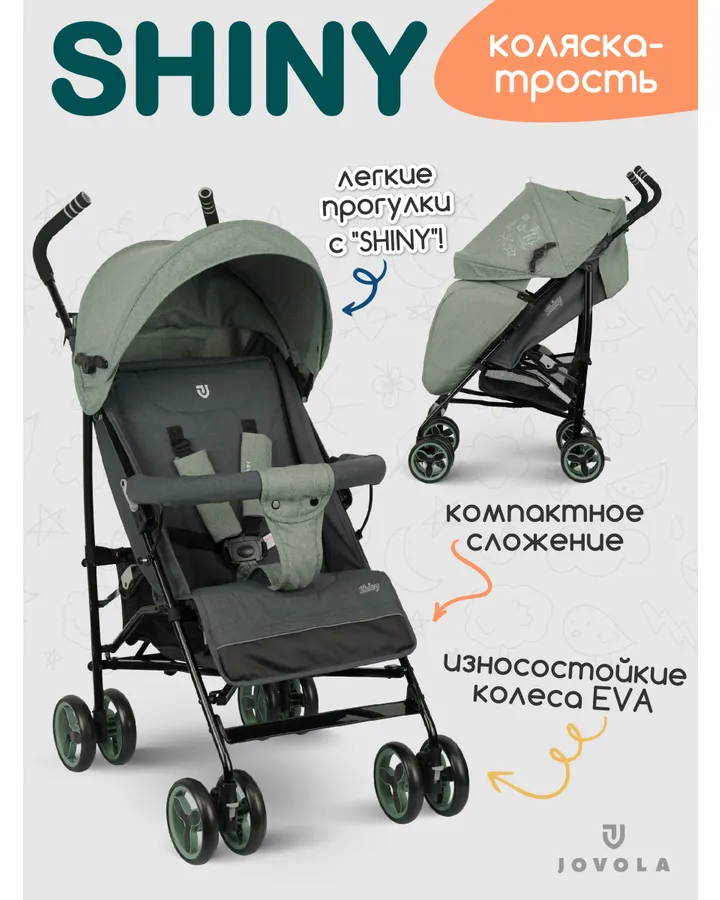 Коляска прогулочная JOVOLA Shiny оливковый бежевый