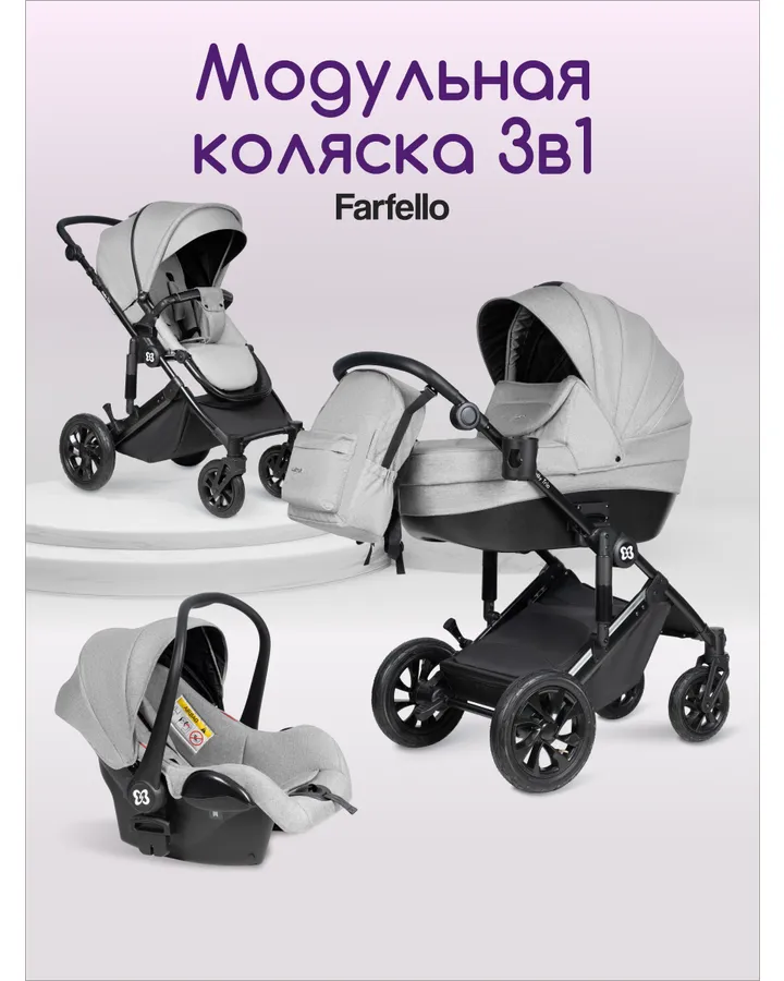 Коляска 3в1 Farfello для новорожденных бежевыйДоче 1год и 4 месяца, вот столько мы пользуемся коляской. Ни разу не пожалела о покупке. Люлька удобная , просторная. Автокресло, вещь не заменимая, много раз выручало, даже засыпали в нем не один раз. Прогулочная коляска- огонь. Столько пешком прошли с ней, все выдержала. Коляска тяжелая, отстирывается хорошо, хоть и светлая. Рекомендую.