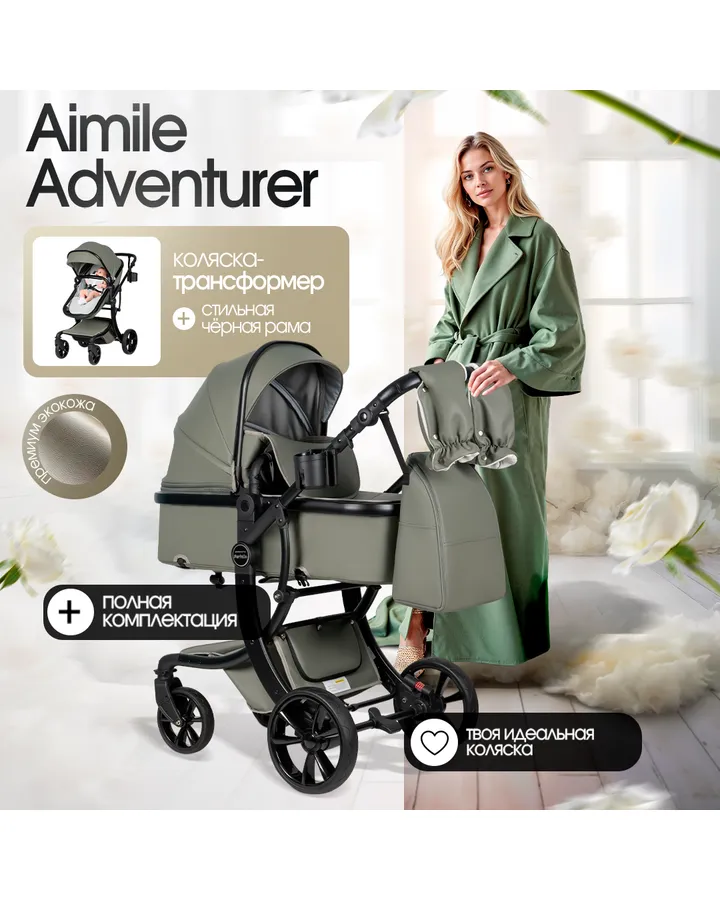 - Прогулочные коляски с отделкой цвета хаки, идеально подходящие для городских условий и активного образа жизни.