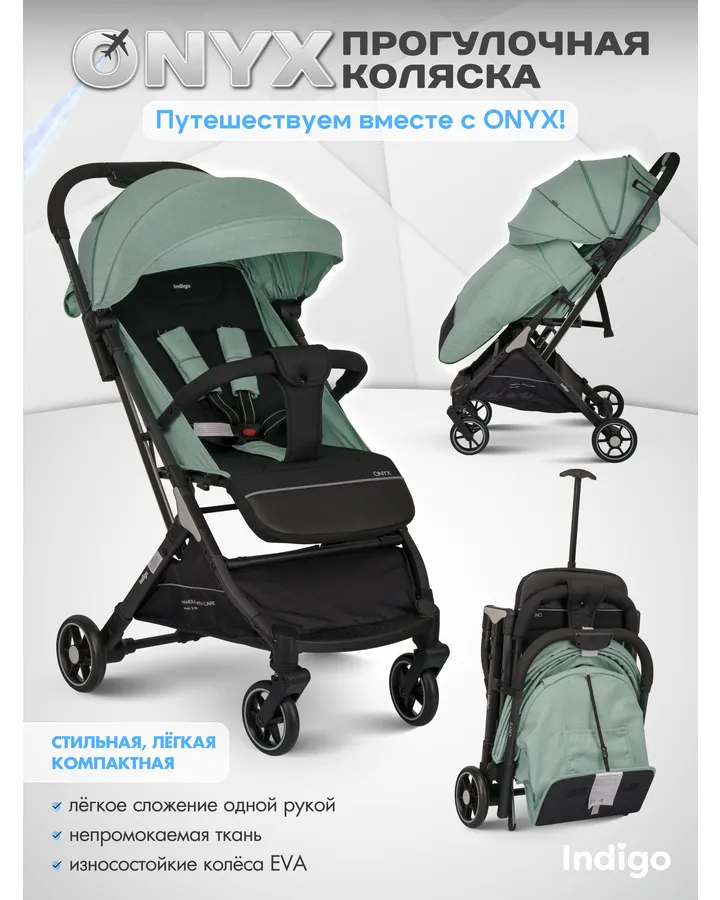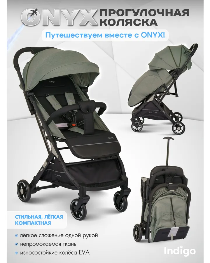 Коляска прогулочная Indigo ONYX, оливковый зеленый