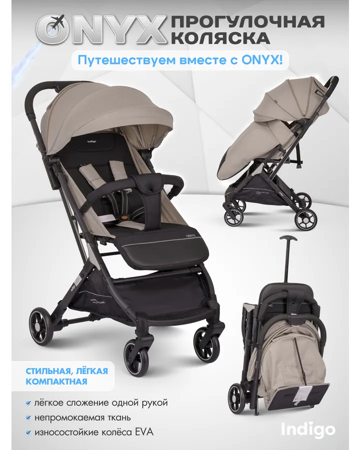 Коляска прогулочная Indigo TRIP для путешествий, с.-серый серый