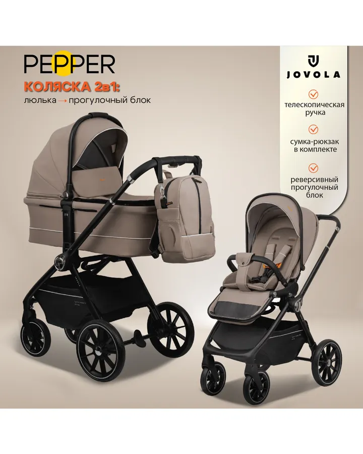 5Коляска трансформер JOVOLA 3в1 Folk, терракот👍👍👍