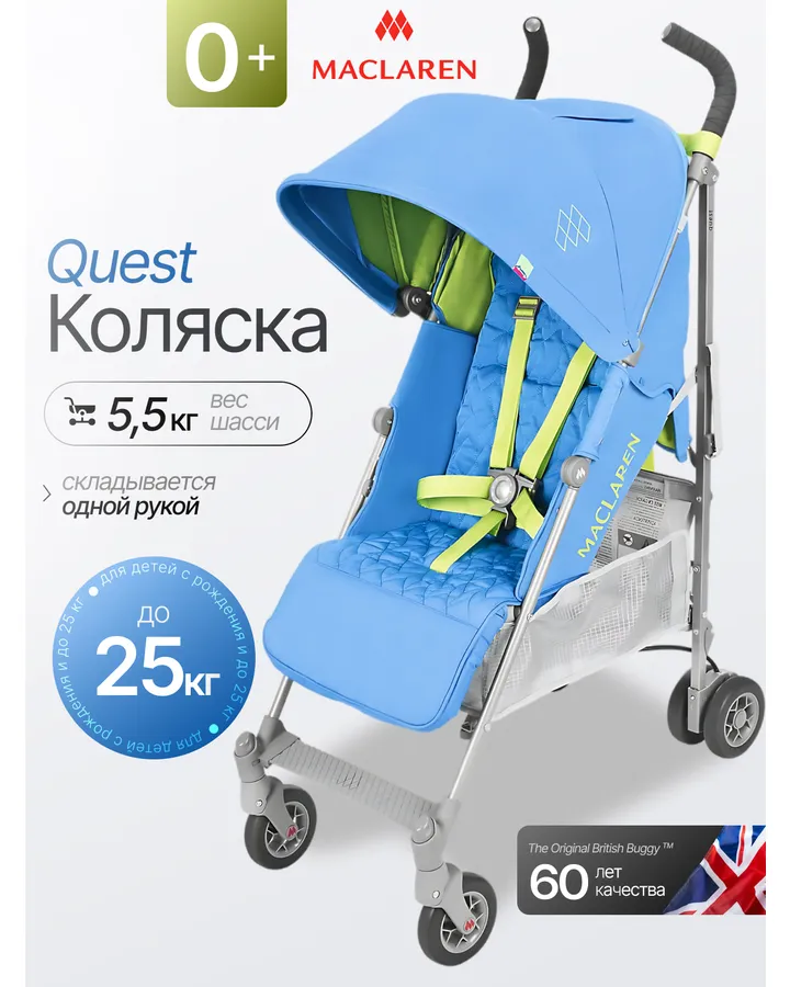 Коляска прогулочная Maclaren Quest Marina/Limeade голубой